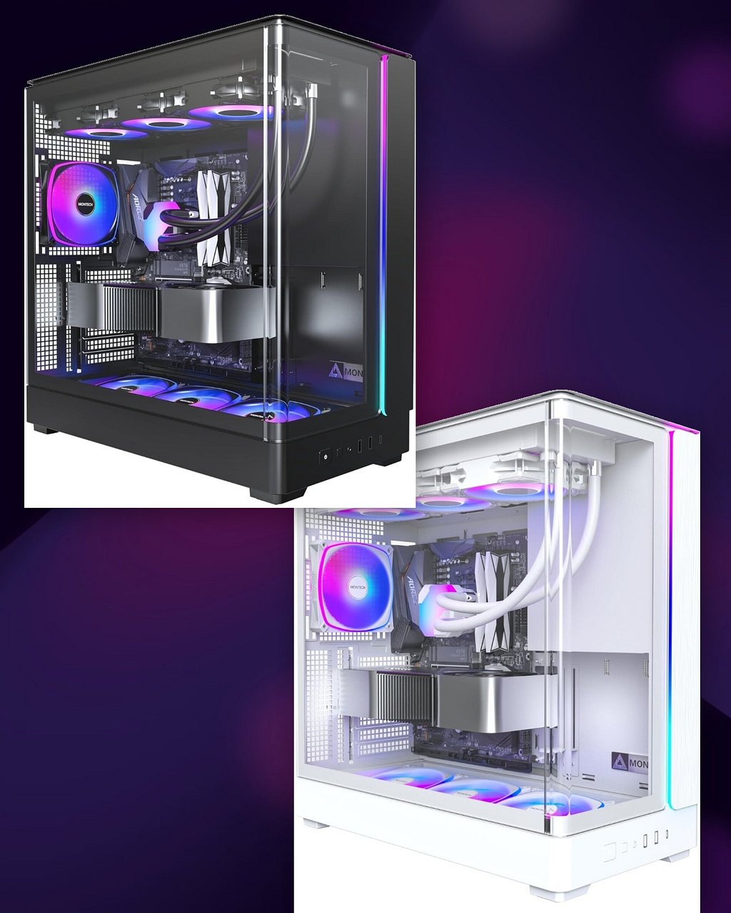 The Royale 99 Rose Gold Edition boasts an elegant rose gold exterior complemented by a pristine white interior. This high-performance gaming system will incorporate the same identical AMD 9900x CPU and intelligent display CPU cooler found in the standard edition, while offering a premium aesthetic.